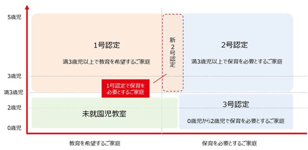 通常、保育所は保育の必要性がなくなった場合、退所しなければなりませんが、幼稚園型認定こども園では後述の1号認定と呼ばれる幼稚園籍の認定によって、退園することなく、そのまま利用することができます。