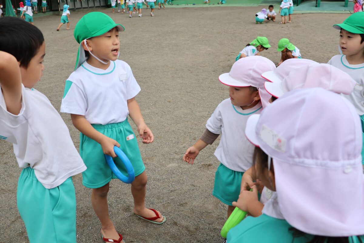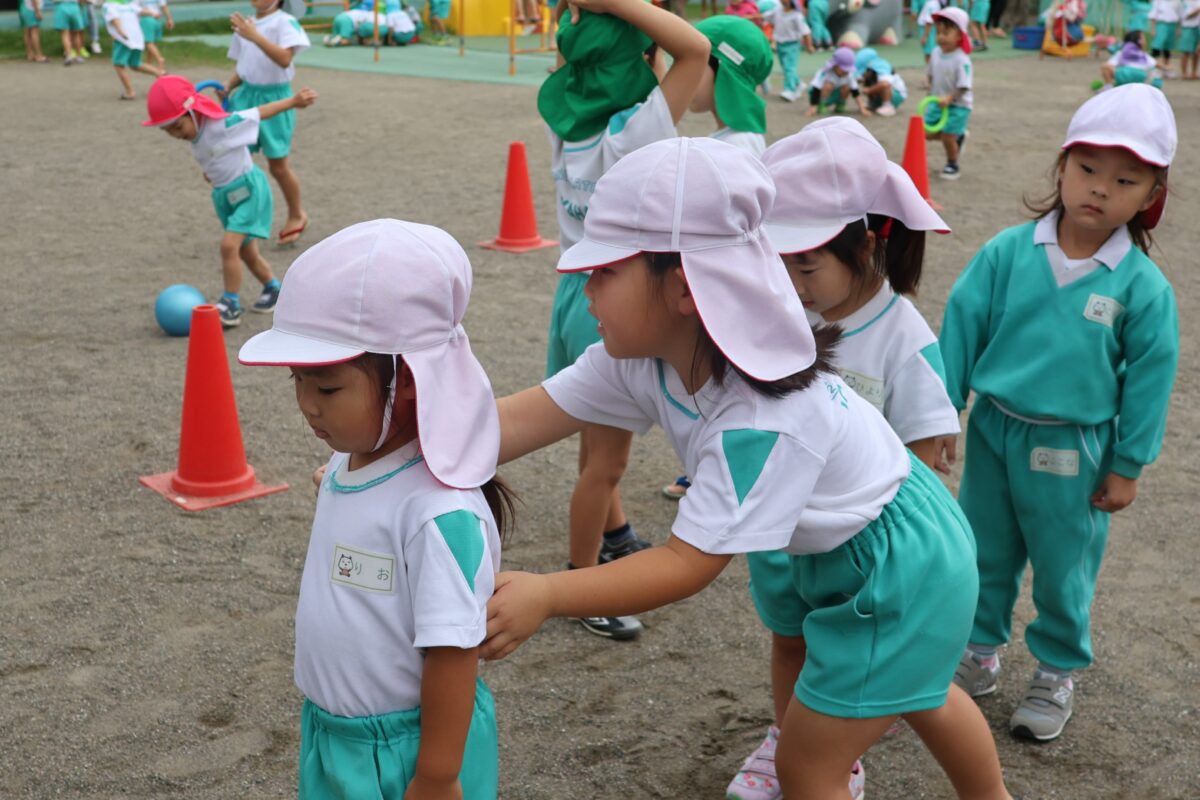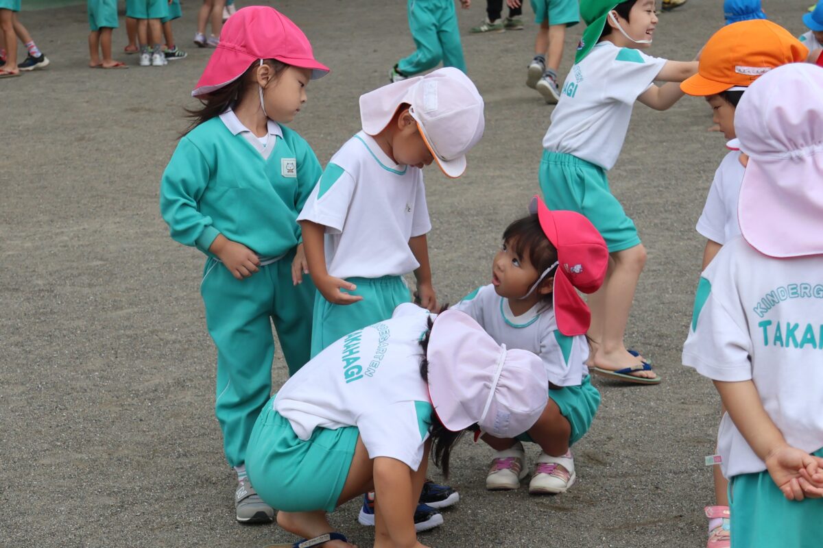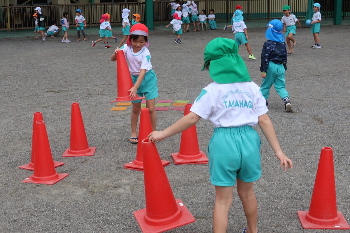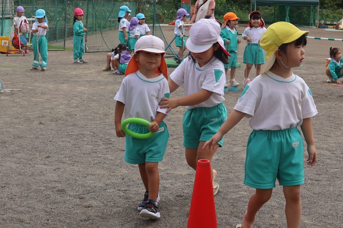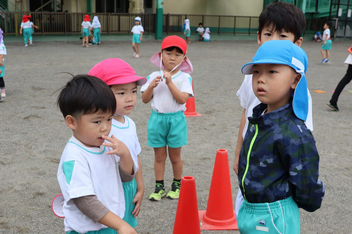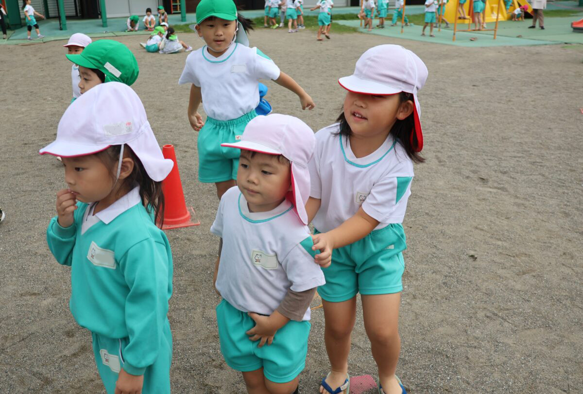 ①今日は待ちに待った涼しい日でした。早速園庭に出た年長さんはリレーの準備を始めます😄 ②三角コーンを持って来てトラックを作っていると… ③「貸して~!!」と年少さんが三角コーンを手にしています。年長さんは「何に使うの❓」と聞いてくれました😉 ④年少さんは「鉄棒に使いたい」ですって!!年長さんは「鉄棒には三角コーンは使わないと思うよ💦」と言いながらも… ⑤「1つなら大丈夫だな!!」と貸してくれて… ⑥空いてしまった三角コーンの間隔を調整してくれているのです!!「リレーで使っているよ!!」ではなく、年少さんに理由を聞いてその気持ちを汲んでくれる優しさが嬉しいですね💖 ⑦しばらくするとあっ!!先ほどの年少さんがリレーに参加しています!! ⑧バトンを受け取り嬉しそうに走り出すと… ⑨なんとグルグルと走り続け、4周目に突入です😁「待って~!!」と後ろから追いかける年長さん!! ⑩みんなも集まってきました。年長さんは「バトンを持って1周走ったら次の人に渡すんだよ!!」とリレーの説明をしてくれているのです😁 ⑪さらに無事に第一走者が走り出した後、お姉さんは次にバトンを受け取るお友達を誘導し… ⑫戻ってきたお友達のバトンパスを見守ってくれています😊 ⑬そして無事に次の走者を送り出すと… ⑭今度は戻ってきたお友達を列の最後尾へと連れて行ってくれたのです。✨ ⑮そんな頼もしいお姉さんがいてくれるので、後から来てくれた年少さんも… ⑯優しく教えてもらいながら… ⑰安心して参加する事が出来るのです🎵 ⑱お姉さんだけではありません!!もちろんお兄さんだって… ⑲年少さんにピッタリと付いて一緒に走ってくれていますよ💖見ているだけで周りも自然と笑顔が溢れる光景です✨ ⑳あっ!!一人で楽しく走っていた年少さんが転んじゃった💦 ㉑するとすぐに他のクラスの年少さんがやって来て、手を繋いで起こそうとしてくれているのです💖 ㉒そしてケガが無いかみんなが心配をしてのぞき込んでいますよ😆 ㉓でもご覧ください✨しばらくするとこの通り。また笑顔で走っていますよ💖みんなの思いやりのお陰でしょうね😍