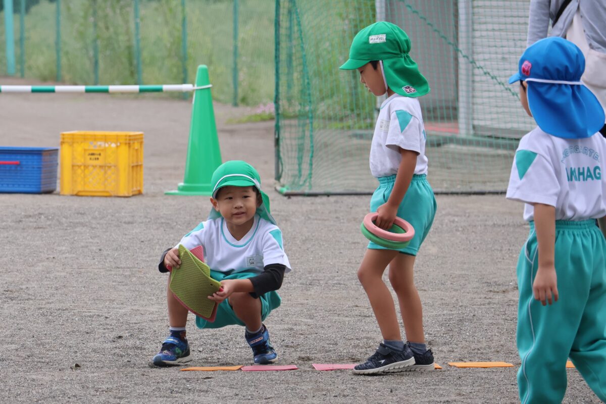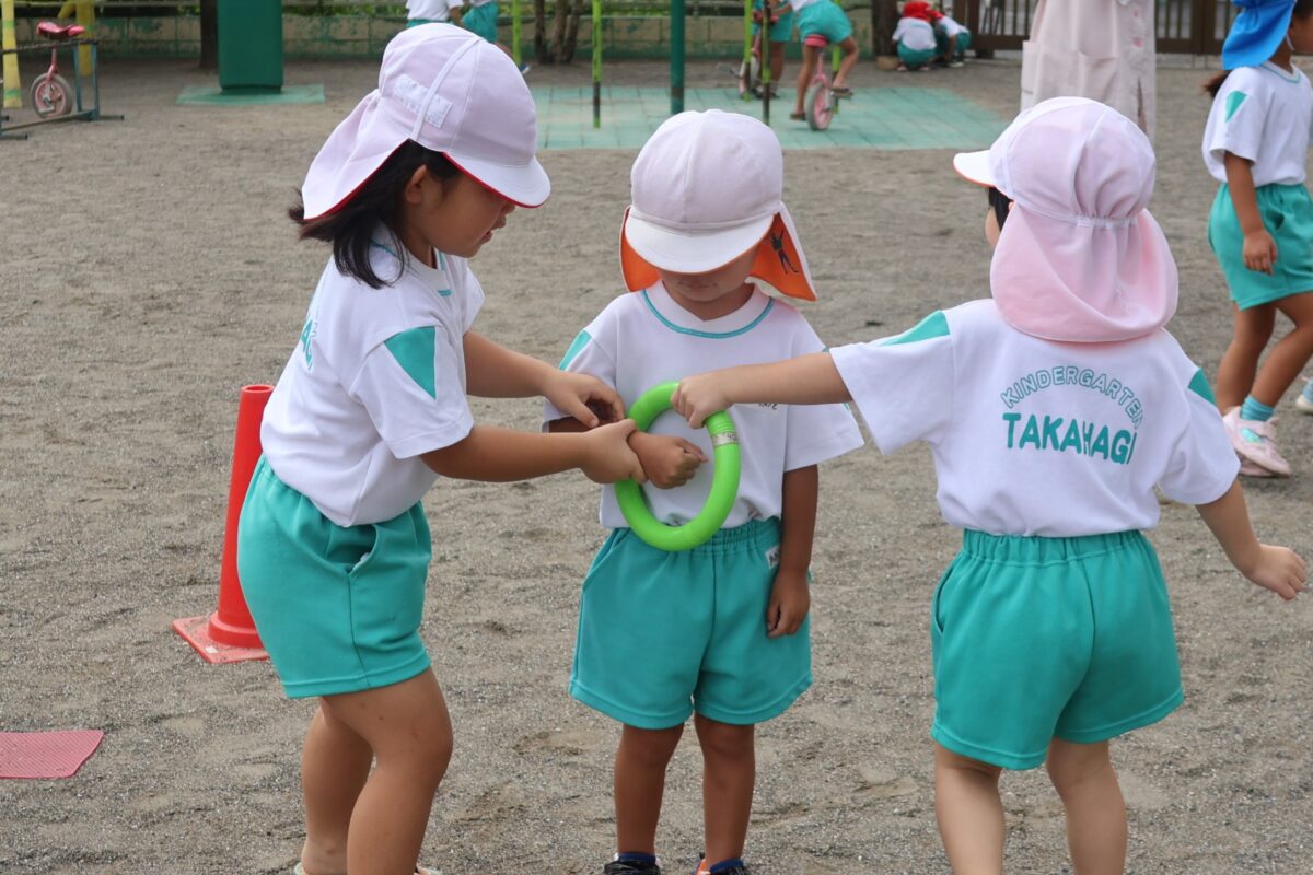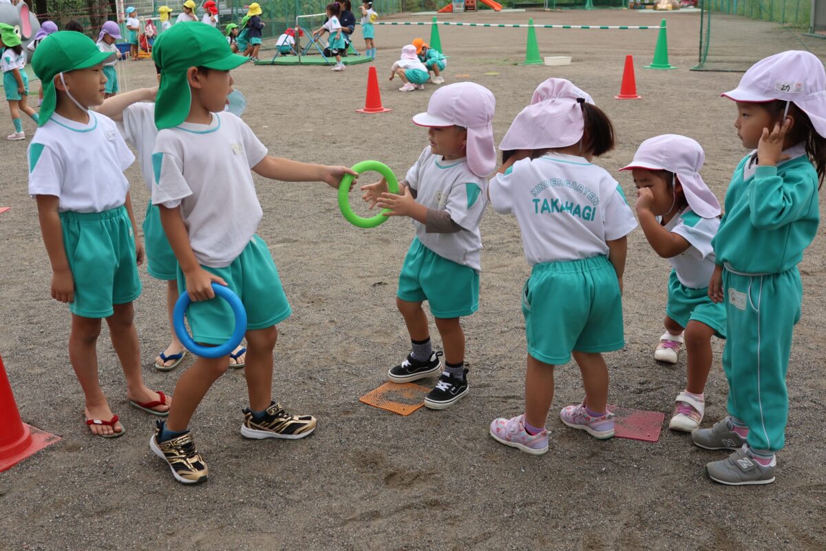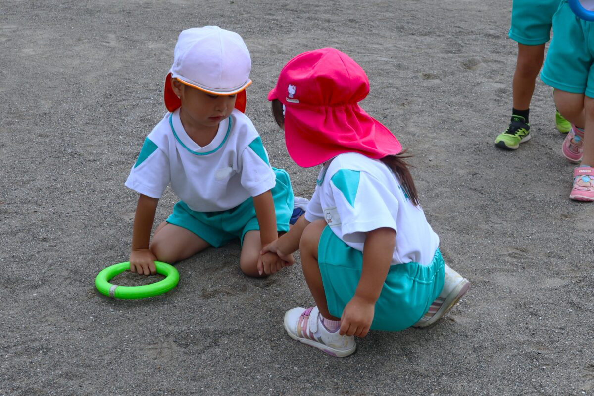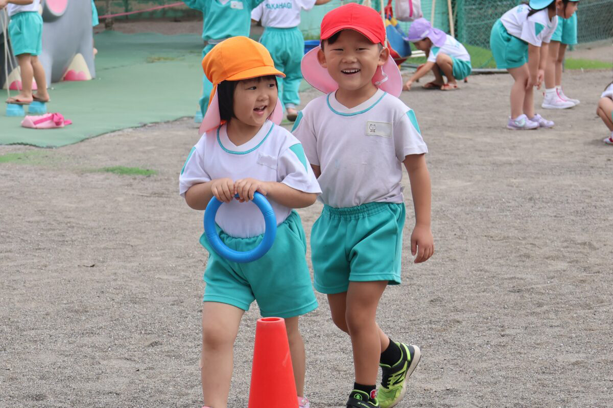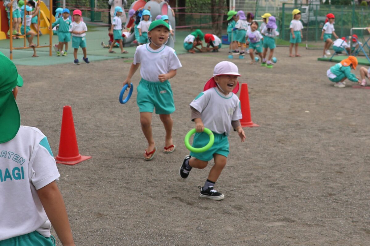 ①今日は待ちに待った涼しい日でした。早速園庭に出た年長さんはリレーの準備を始めます😄 ②三角コーンを持って来てトラックを作っていると… ③「貸して~!!」と年少さんが三角コーンを手にしています。年長さんは「何に使うの❓」と聞いてくれました😉 ④年少さんは「鉄棒に使いたい」ですって!!年長さんは「鉄棒には三角コーンは使わないと思うよ💦」と言いながらも… ⑤「1つなら大丈夫だな!!」と貸してくれて… ⑥空いてしまった三角コーンの間隔を調整してくれているのです!!「リレーで使っているよ!!」ではなく、年少さんに理由を聞いてその気持ちを汲んでくれる優しさが嬉しいですね💖 ⑦しばらくするとあっ!!先ほどの年少さんがリレーに参加しています!! ⑧バトンを受け取り嬉しそうに走り出すと… ⑨なんとグルグルと走り続け、4周目に突入です😁「待って~!!」と後ろから追いかける年長さん!! ⑩みんなも集まってきました。年長さんは「バトンを持って1周走ったら次の人に渡すんだよ!!」とリレーの説明をしてくれているのです😁 ⑪さらに無事に第一走者が走り出した後、お姉さんは次にバトンを受け取るお友達を誘導し… ⑫戻ってきたお友達のバトンパスを見守ってくれています😊 ⑬そして無事に次の走者を送り出すと… ⑭今度は戻ってきたお友達を列の最後尾へと連れて行ってくれたのです。✨ ⑮そんな頼もしいお姉さんがいてくれるので、後から来てくれた年少さんも… ⑯優しく教えてもらいながら… ⑰安心して参加する事が出来るのです🎵 ⑱お姉さんだけではありません!!もちろんお兄さんだって… ⑲年少さんにピッタリと付いて一緒に走ってくれていますよ💖見ているだけで周りも自然と笑顔が溢れる光景です✨ ⑳あっ!!一人で楽しく走っていた年少さんが転んじゃった💦 ㉑するとすぐに他のクラスの年少さんがやって来て、手を繋いで起こそうとしてくれているのです💖 ㉒そしてケガが無いかみんなが心配をしてのぞき込んでいますよ😆 ㉓でもご覧ください✨しばらくするとこの通り。また笑顔で走っていますよ💖みんなの思いやりのお陰でしょうね😍