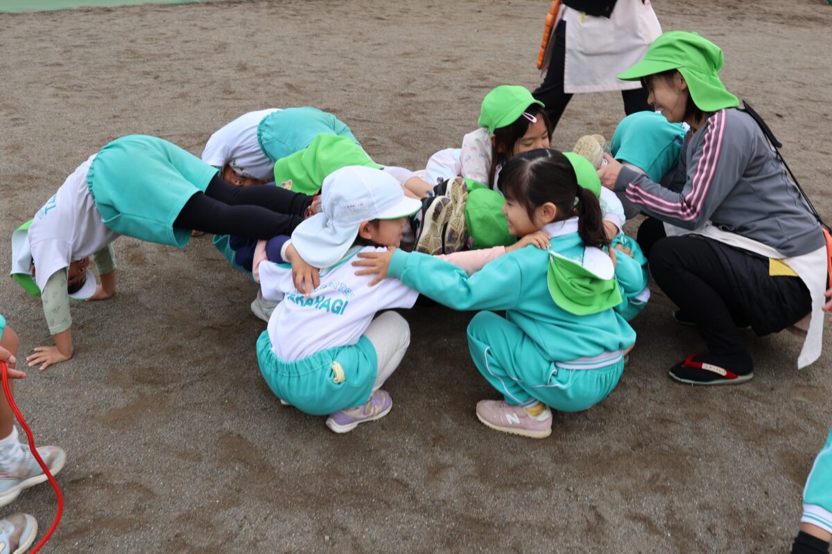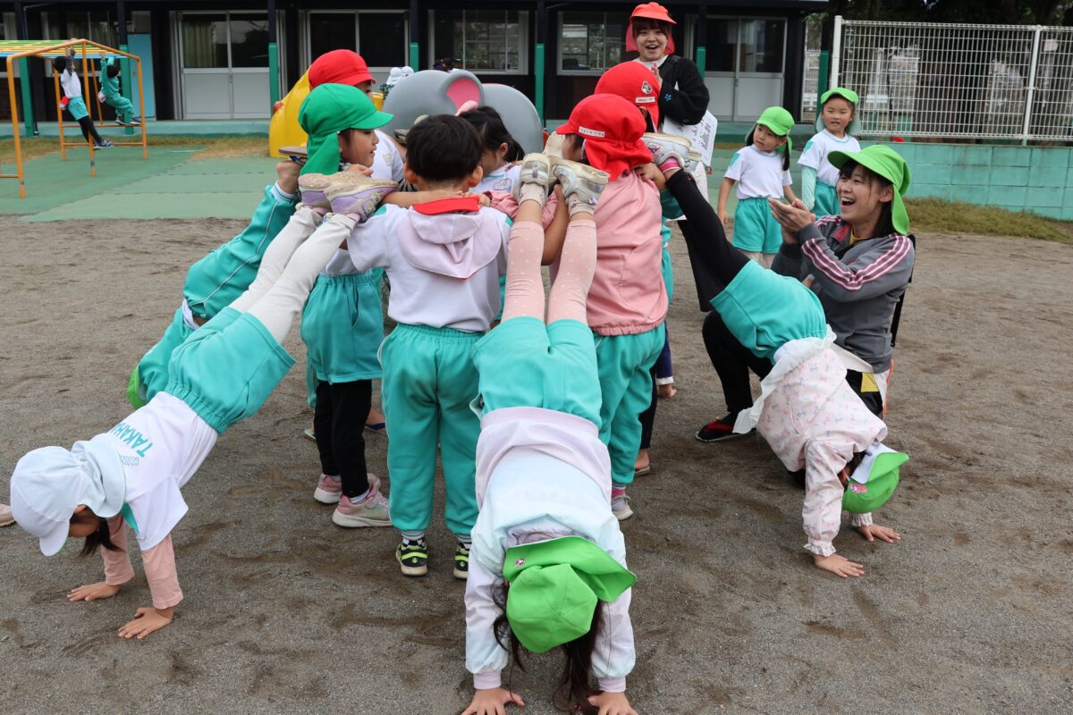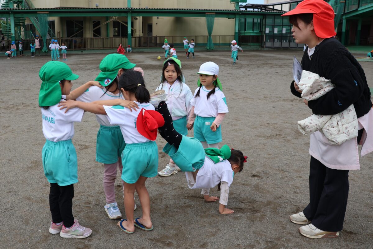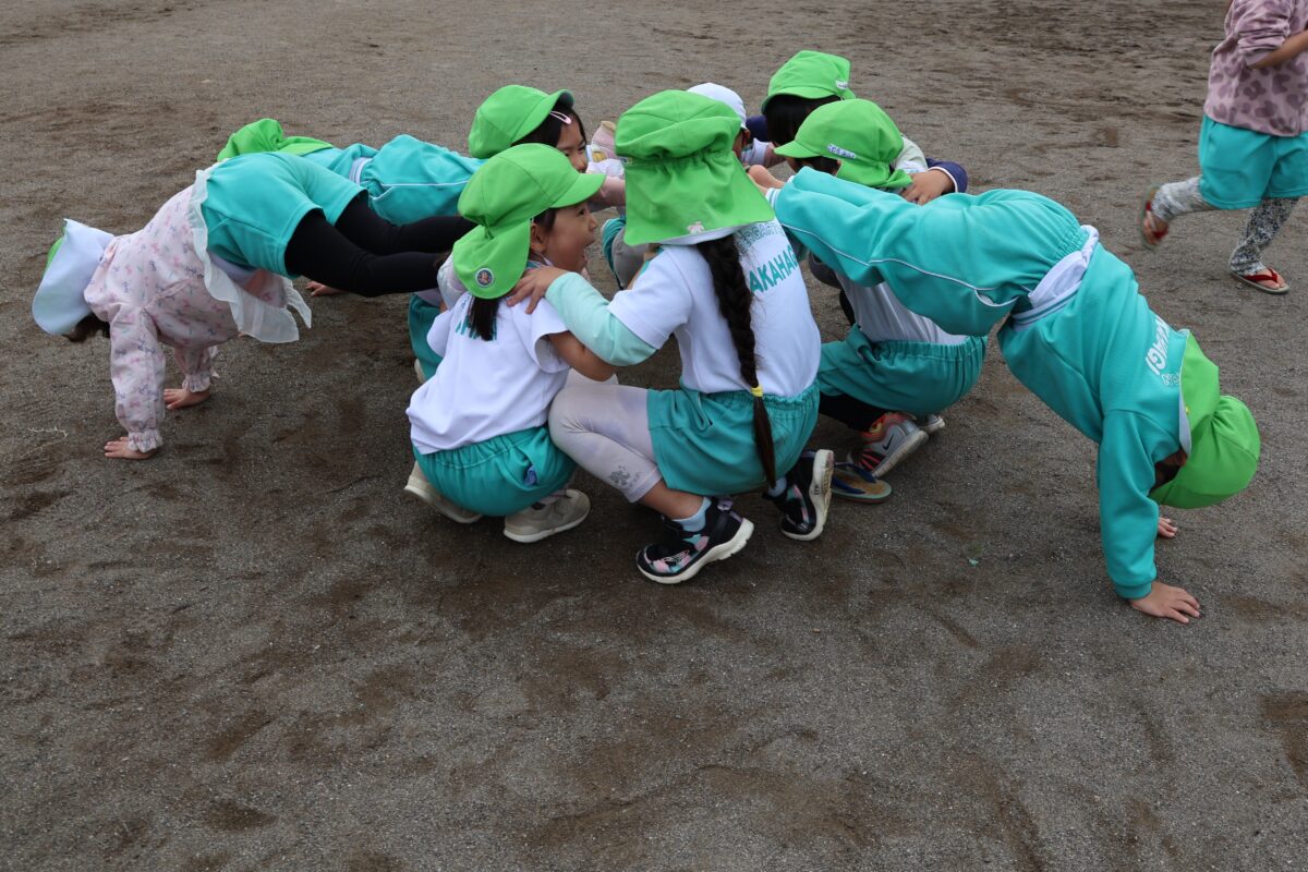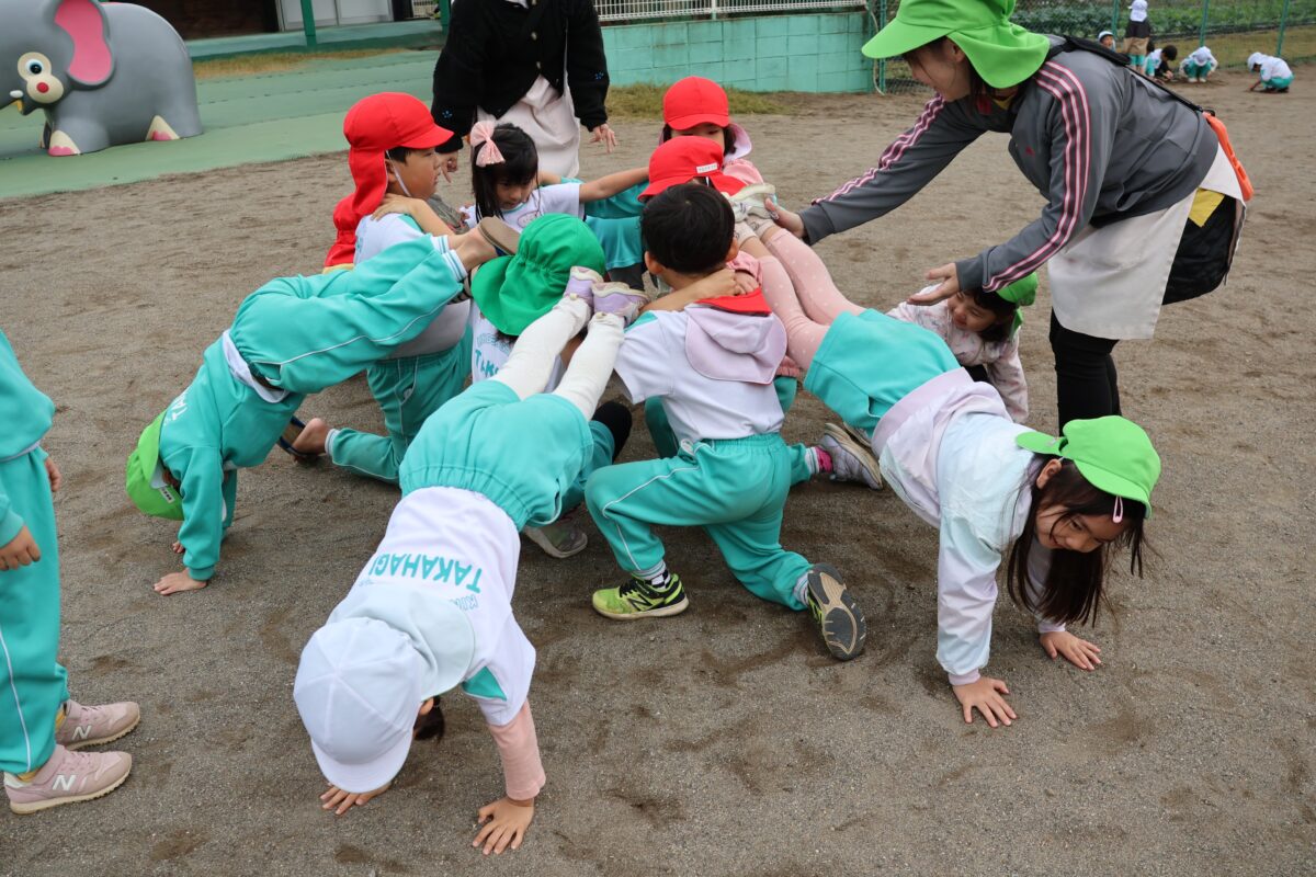 ①年中さんが言っています。「組体操やりたいんだ~!」