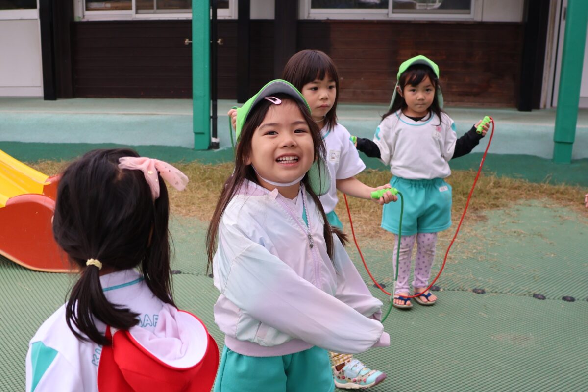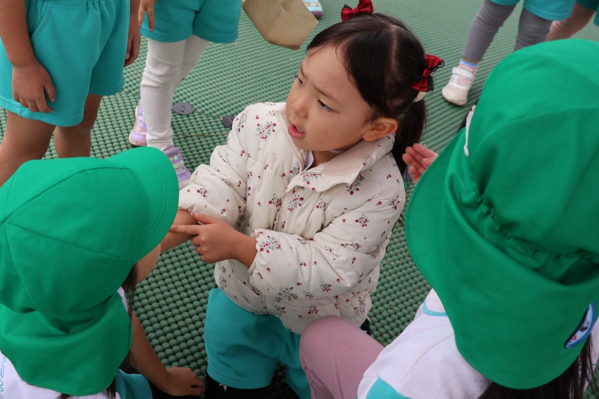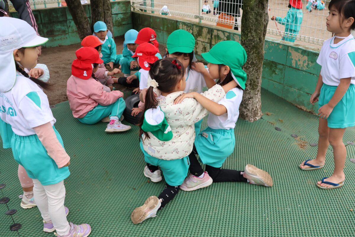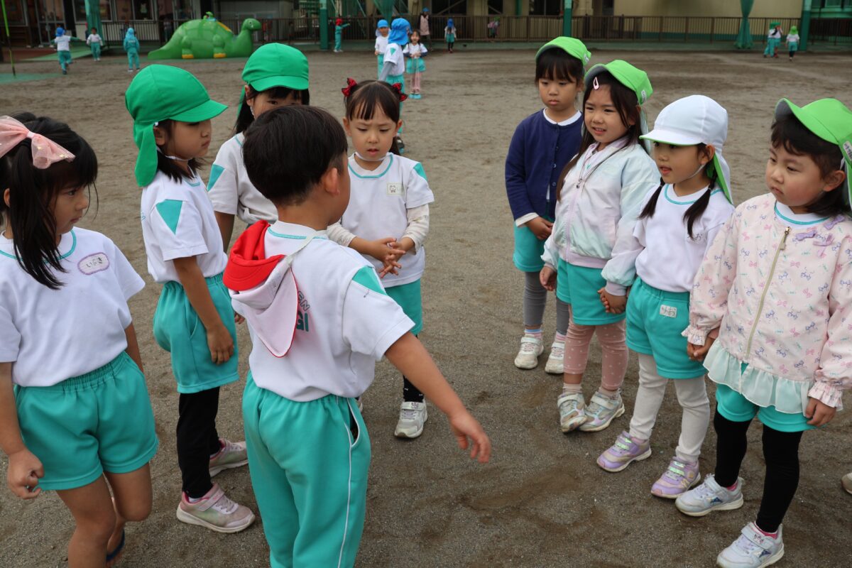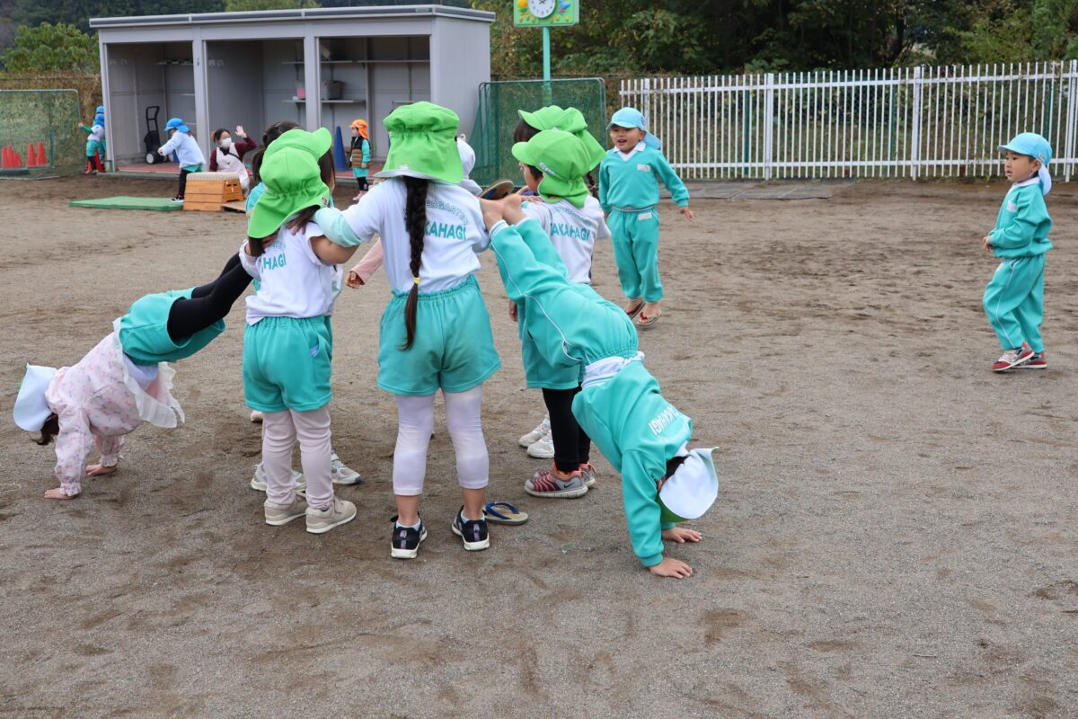 ①年中さんが言っています。「組体操やりたいんだ~!」