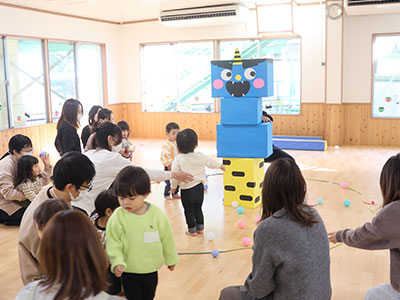 未就園児のクラブです。園児と一緒に過ごしていただく中で、より多くの友達関係を築いていきます。