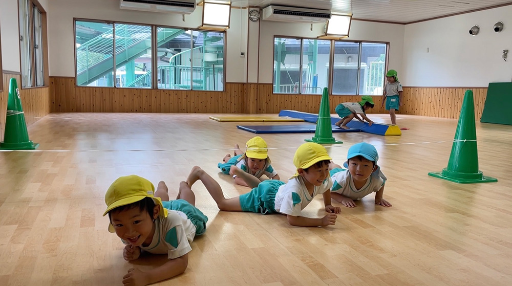 バランスクラブは体幹を鍛えることを目的とし、運動能力向上や自己肯定感が高まるよう活動しています。 幼児期は、運動に関係する神経の回路が発達していき、体を動かし操ることで運動能力がぐんと伸びていきます。 サーキットトレーニングやマット運動、鉄棒、跳び箱等たくさんのことに挑戦し、できることの嬉しさ、楽しさを体感しましょう。