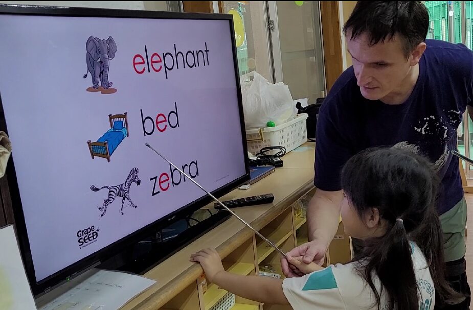 週3回の小学生グレープシードクラスです。聞く、話す、読む、書くの4つの技能をバランスよく伸ばします。